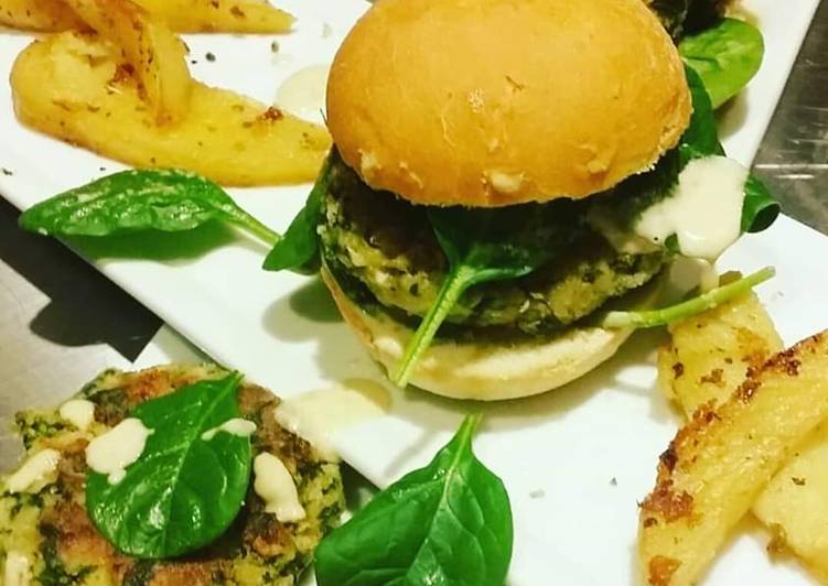 Recipe of Favorite Spinach, Chickpea and Feta Burger w/Lemon Tahini Dressing,,๐